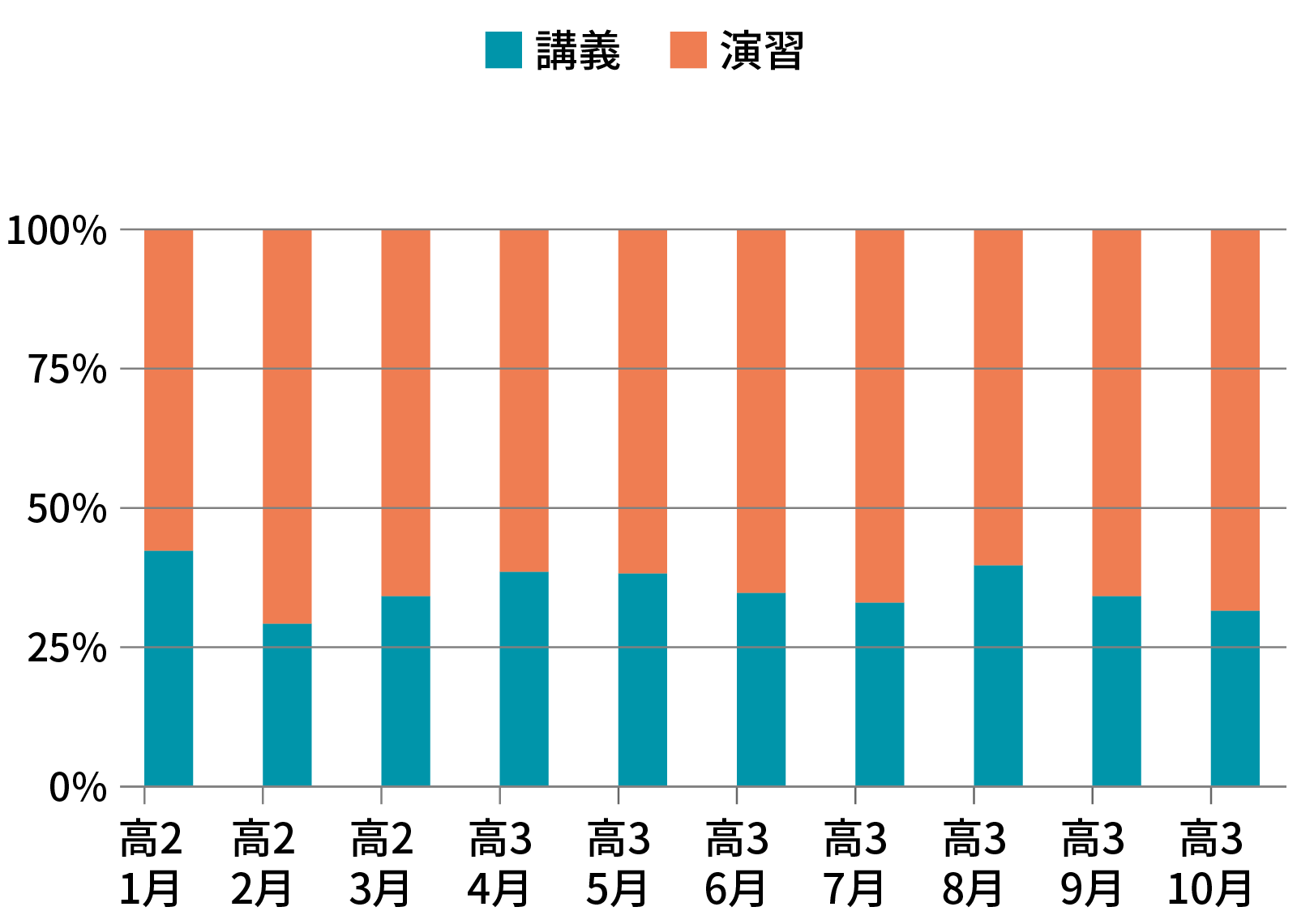 講義を受けて身につけるより、演習を積んでやってみて間違えて覚えるというのが私の学習スタイルだったので、グラフの通りだと思います。